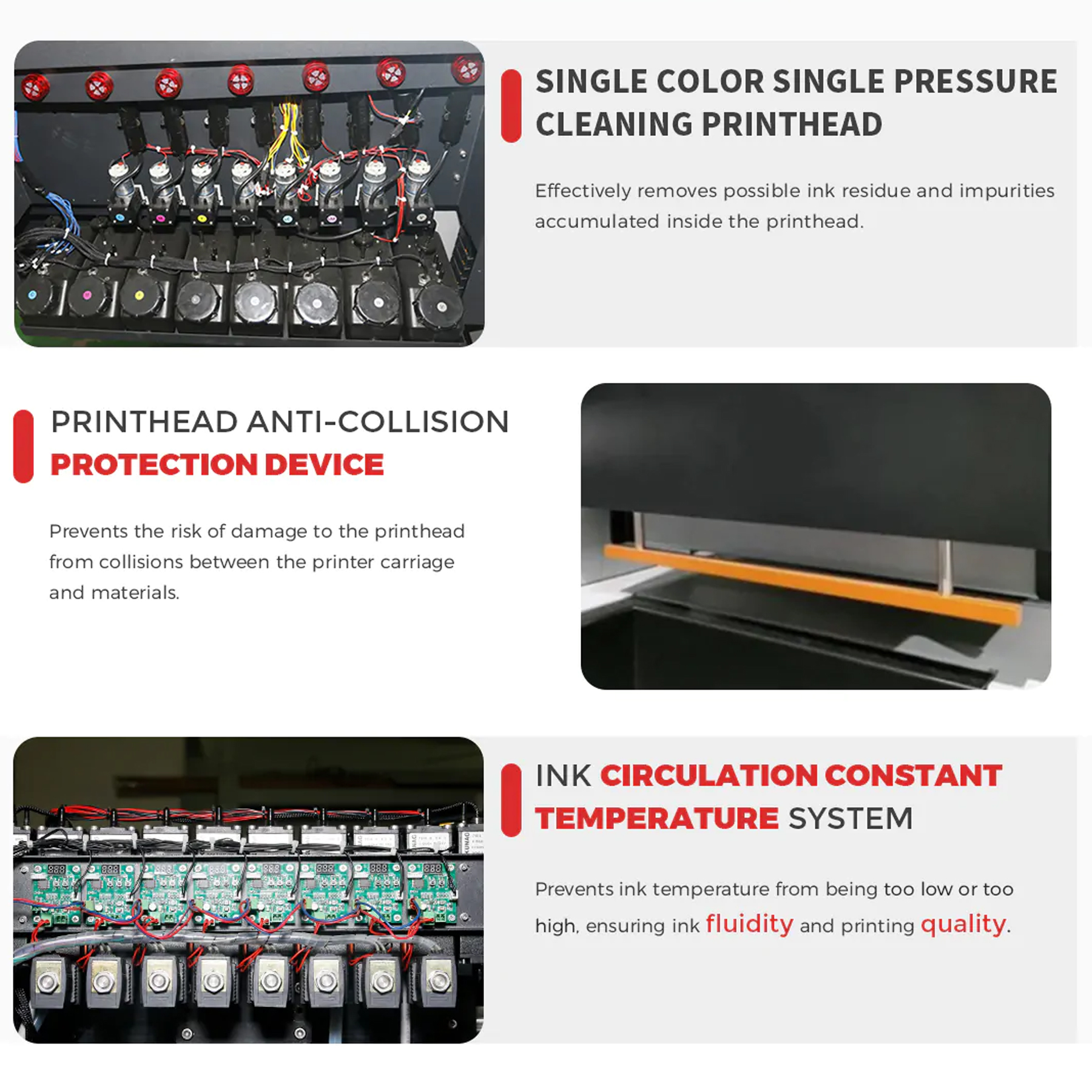 The adjustable printhead height ranges from 2-100mm, and the printing size is 3200x2000mm, making itsuitable for the home decoration industry and construction material printing.