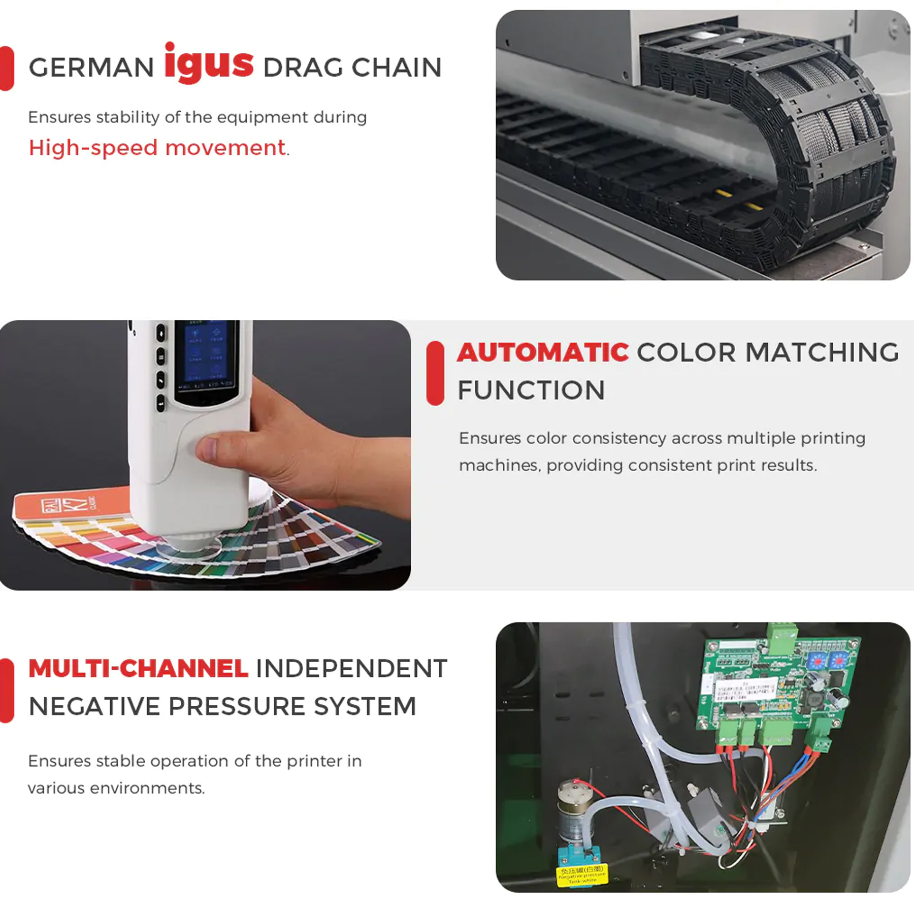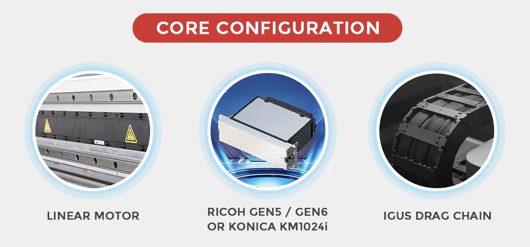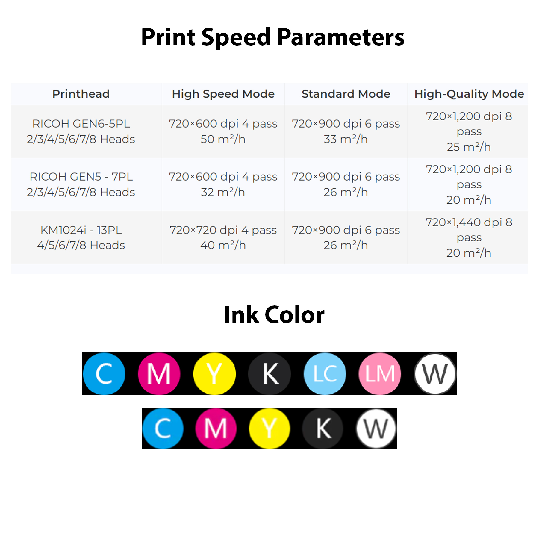 Equipped with RICOH G5/G6 or KONICA’S NEW KM1024i high-speed industrial-grade printheads, achieving a printing speed of up to 50m2/h;
