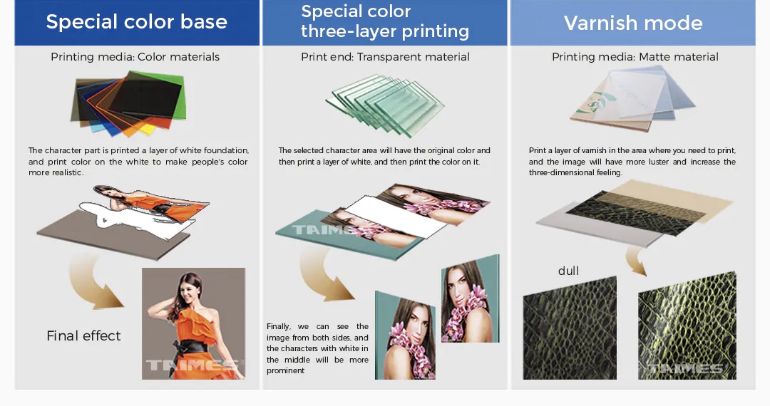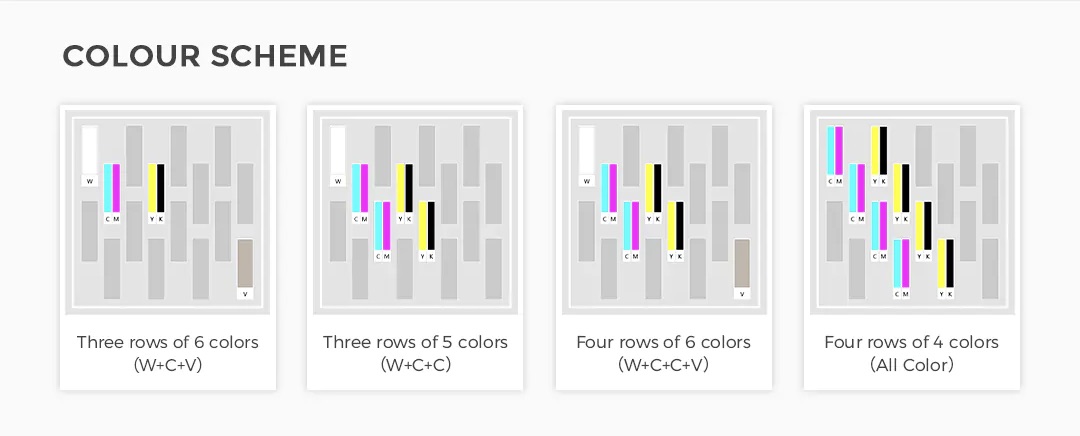 we have CMYK+LC+LM, 7 or 10 color scheme, more multi-way white, varnish channel, more variety of printing spot color customization service.