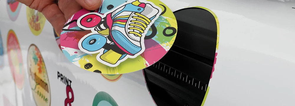 Thanks to the incorporated innovative tangential simulation mode you can make miniature letters, intricate graphic shapes and obtain perfect cut quality with thick materials. With the integrated automatic registration mark detection technology, you can easily produce a series of stickers which are contour cut and/or die cut.