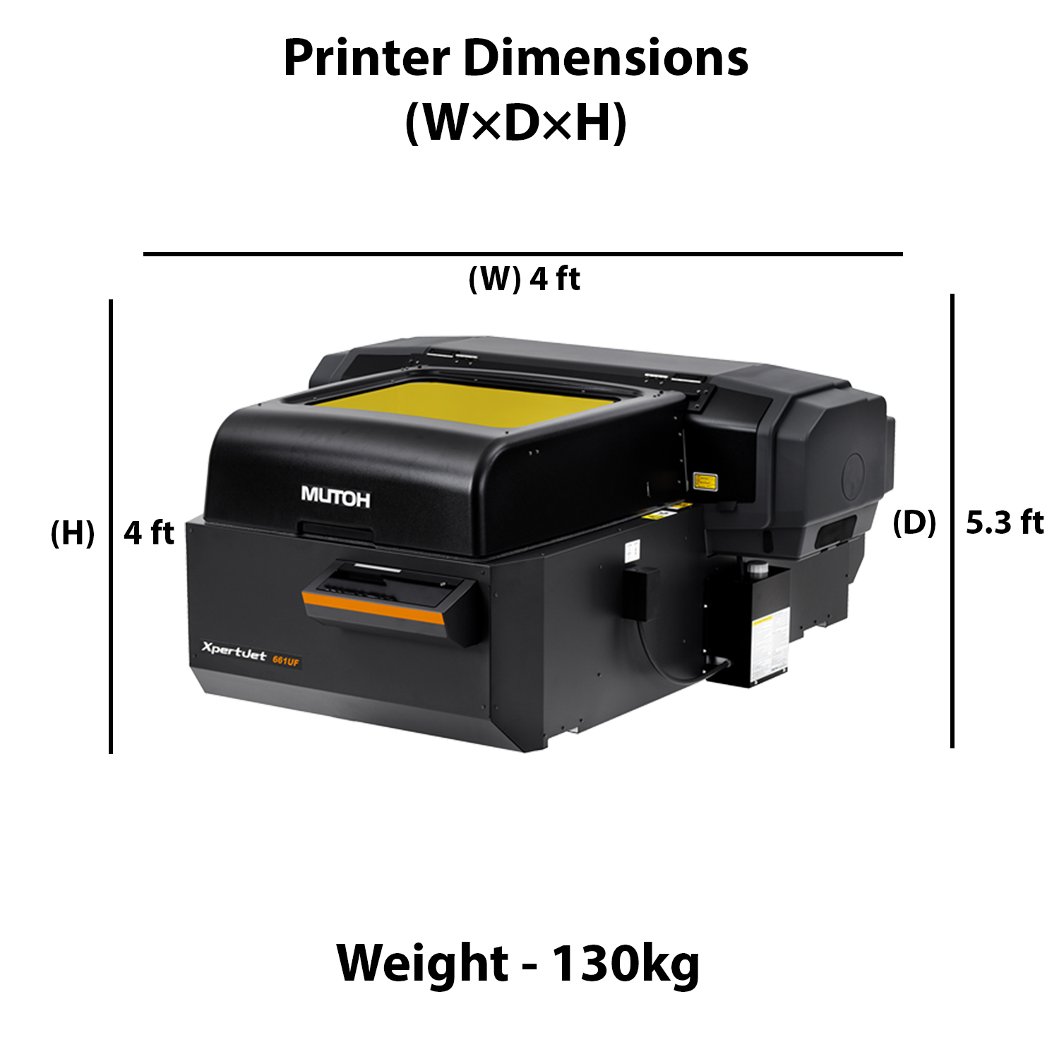 The compact table top A2+ flatbed UV LED XPJ-661UF printer will fit into any regular office, home based business or small retail environment. The direct to object printer offers a print area of 483 mm x 594 mm and can be setup in either CMYK or CMYK + White + Varnish.